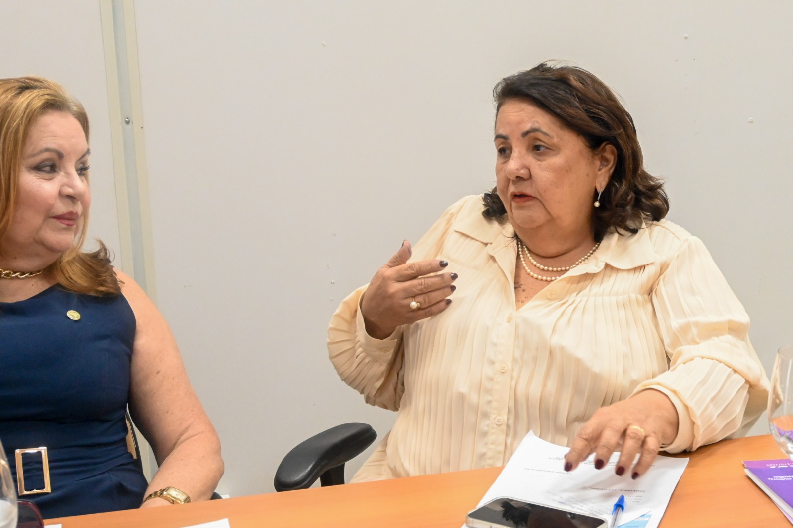 Participaram da reunião a defensora pública-geral, Madalena Abrantes; a coordenadora do Núcleo de Defesa da Mulher (Nudem), Valéria Onofre; as assessoras de gabinete Aline Sales e Monaliza Montenegro; e a psicóloga Vanilda Luna, que atua diretamente na condução dos grupos.
